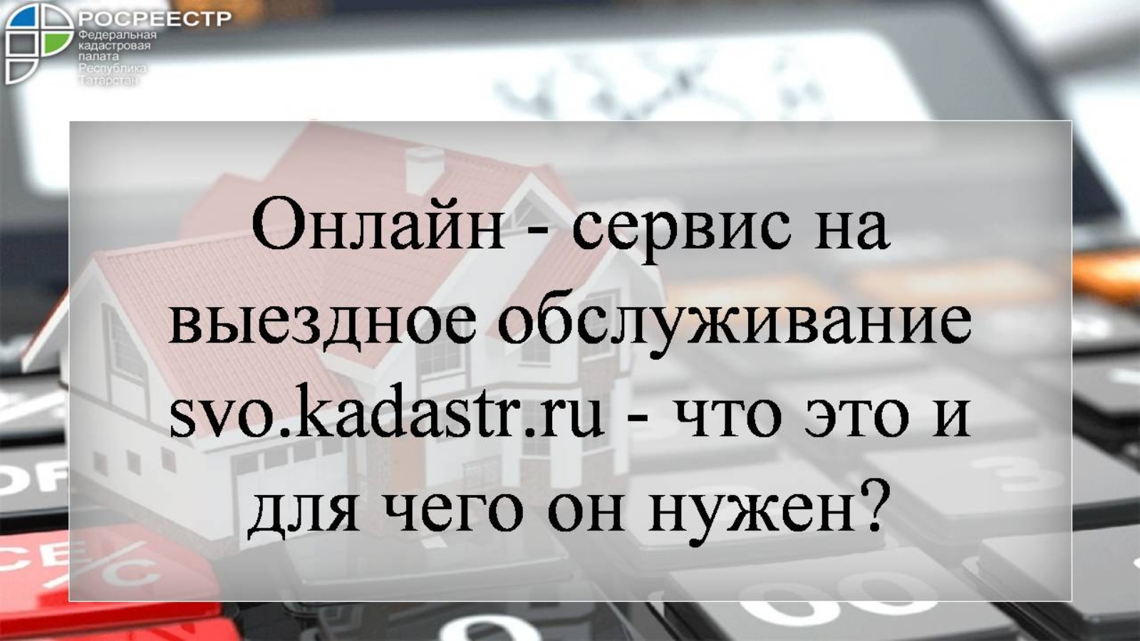 - Федеральная кадастровая палата официально запустила онлайн - сервис svo.kadastr.ru для подачи заявок на выездное обслуживание по всей России. Для того чтобы воспользоваться сервисом, достаточно авторизоваться через портал Госуслуг, откуда данные о заявителе заполняются автоматически. Человек выбирает удобное для него дату и время получения услуги и оплачивает ее с помощью банковской карты на сайте Кадастровой палаты.