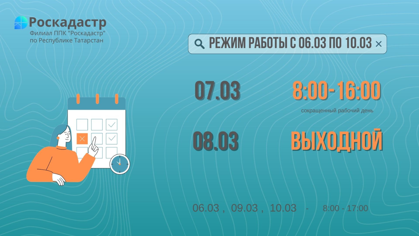 График работы филиала ППК «Роскадастр» по Республике Татарстан в праздничные дни.