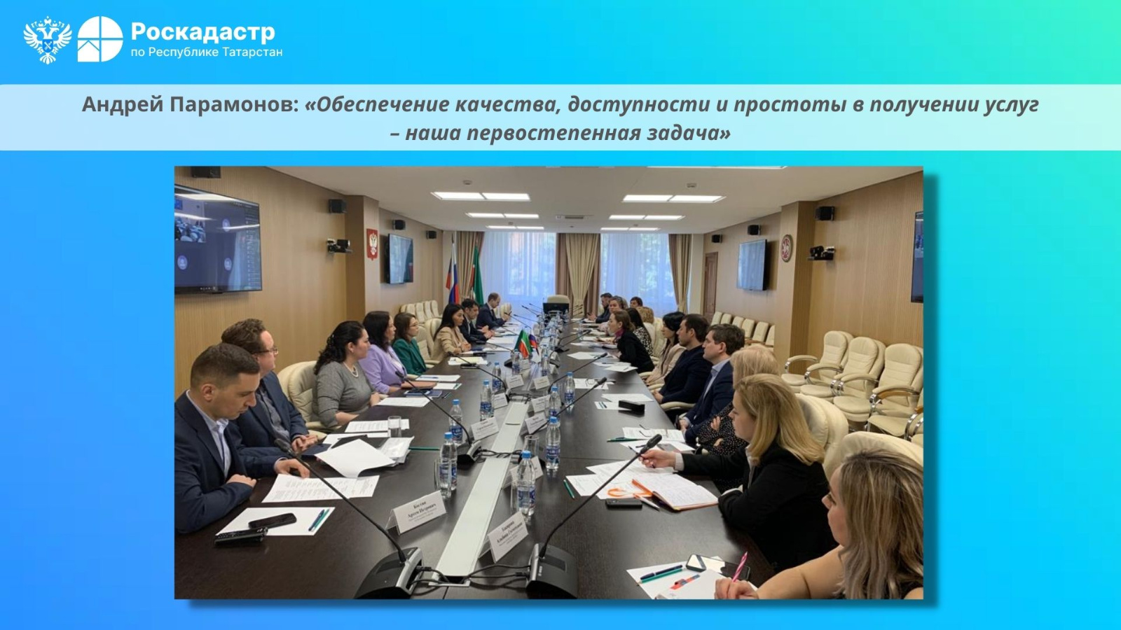 Заместитель директора филиала Роскадастра по Республике Татарстан выступил с докладом на встрече с представителями кредитных организаций по вопросу развития электронной регистрации недвижимости. Организатор - Росреестр Татарстана.