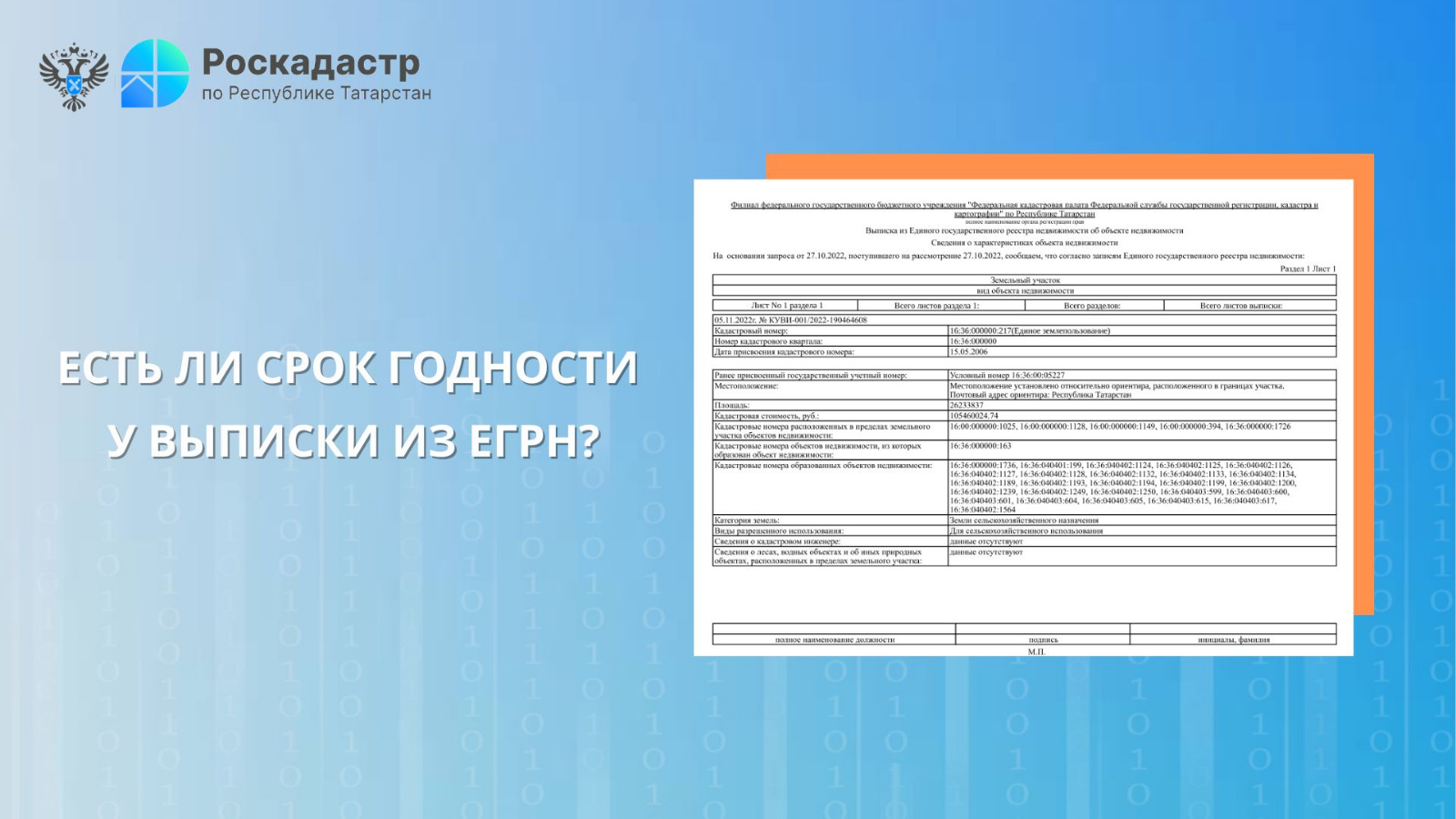 Кроме того, отдельные службы и организации, в которые гражданами самостоятельно предоставляются сведения из ЕГРН, могут оговаривать максимальные сроки «действительности» выписки из ЕГРН с даты ее выдачи.