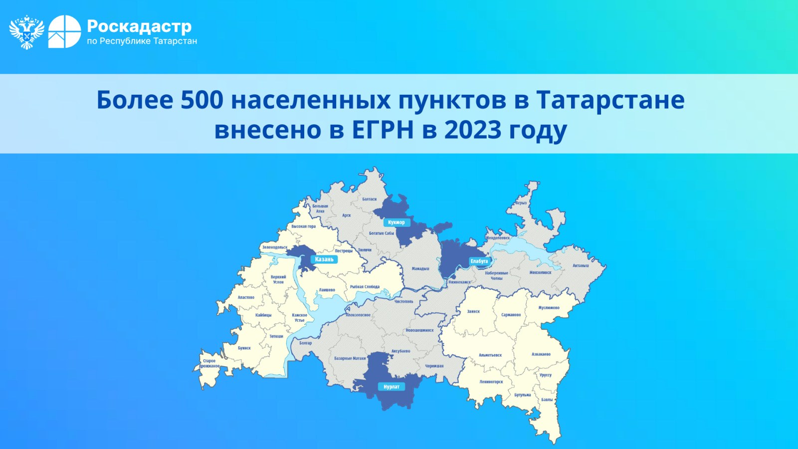 Все границы населенных пунктов, в том числе их наименования, содержащиеся в Реестре наименований населенных пунктов, вносятся в Единый государственный реестр границ (ЕГРН). В настоящее время в ЕГРН содержится 2455 из 3119 населенных пунктов, 534 которых были внесены в 2023 году. Как пояснили в Росреестре Татарстана, мероприятия по внесению в ЕГРН населенных пунктов проводятся, в том числе в рамках реализации госпрограммы «Национальная система пространственных данных».