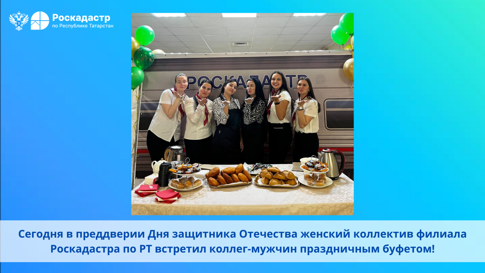 Сегодня в преддверии Дня защитника Отечества женский коллектив филиала Роскадастра по РТ встретил коллег-мужчин праздничным буфетом!