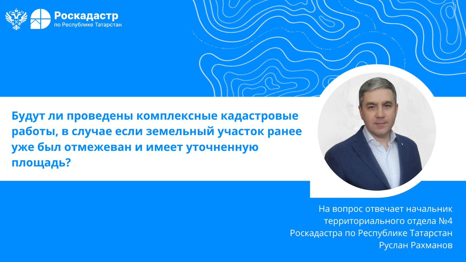 Ответ: Если на момент проведения комплексных кадастровых работ земельный участок имеет уточненную площадь (прошедший межевание), то в отношении его будет проведено повторное межевание и анализ, в случае необходимости будет исправлена реестровая ошибка.