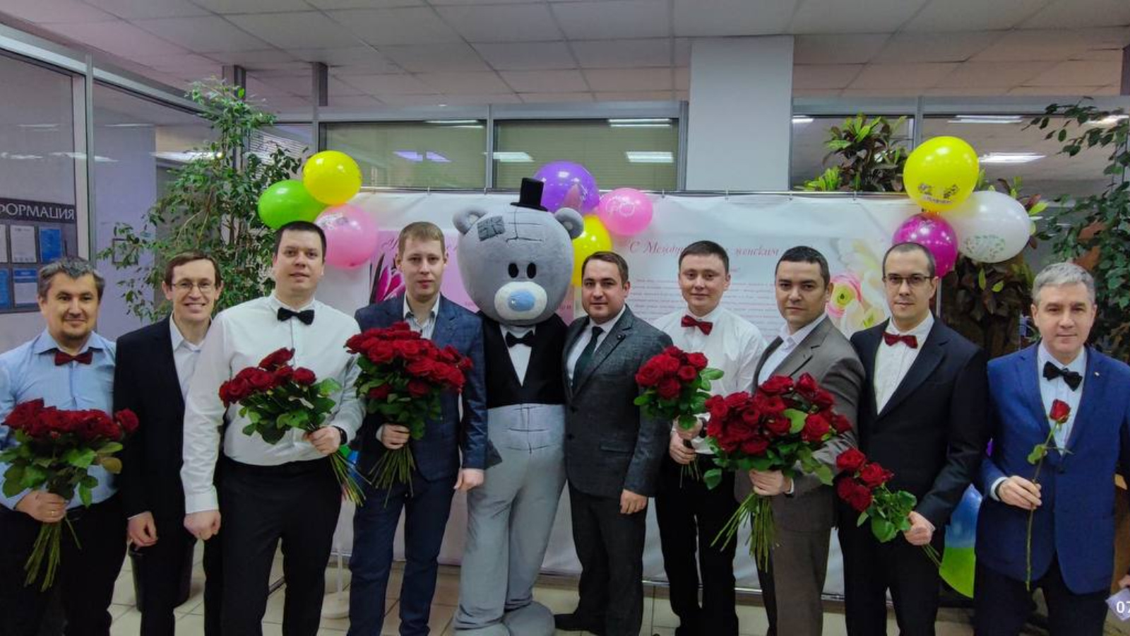 В канун самого весеннего праздника коллеги-мужчины с раннего утра под музыку встречали прекрасную половину коллектива. Дарили цветы и отличное настроение на весь день!