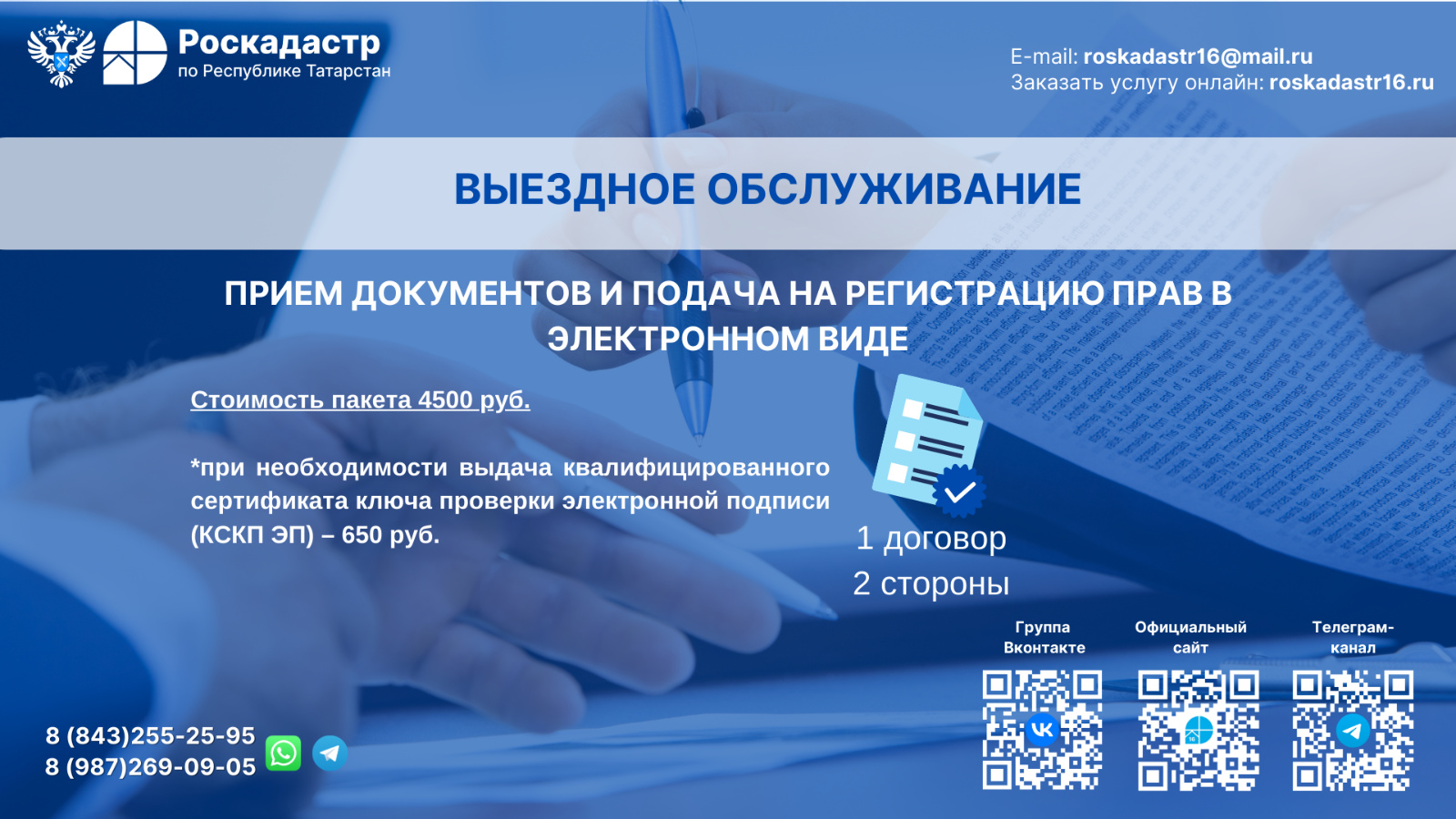 Одна из наиболее популярных услуг филиала Роскадастра по Республике Татарстан — это услуга по выездному приему и курьерской доставке документов.