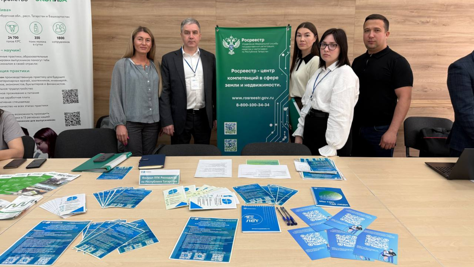 Сегодня филиал Роскадастра по Татарстану организовал свою выставку с вакансиями в Казанском государственном аграрном университете в рамках площадки Всероссийской ярмарки трудоустройства "Ярмарка вакансий – 2025: Время выбирать будущее".