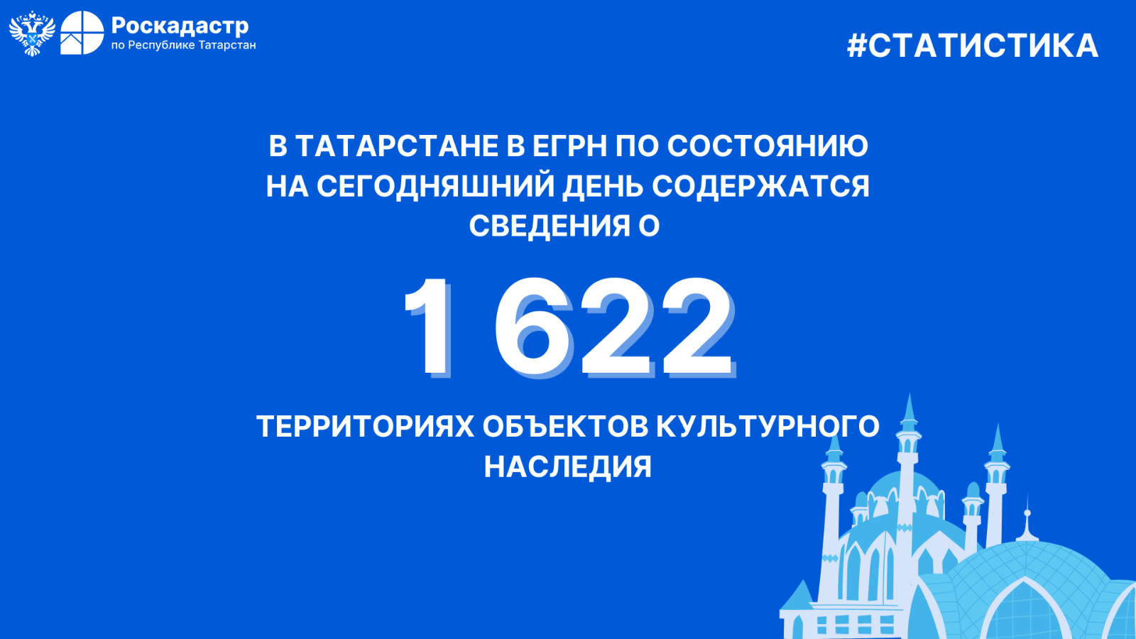 Делимся с вами отчетными данными по количеству сведений, содержащихся в Едином государственном реестре недвижимости по территориям объектов культурного наследия-всего их 1622.