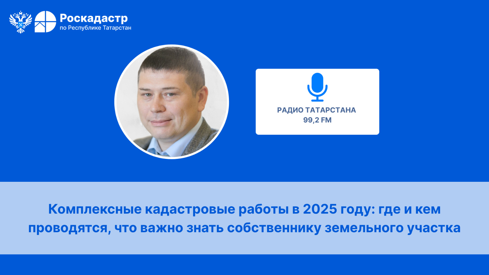 Начальник отдела выполнения комплексных кадастровых работ федерального значения филиала Роскадастра по Республике Татарстан Тимур Мифтахов на «Радио Татарстана» 📻 рассказал о комплексных кадастровых работах в 2025 году: где и кем проводятся, что важно знать собственнику земельного участка.