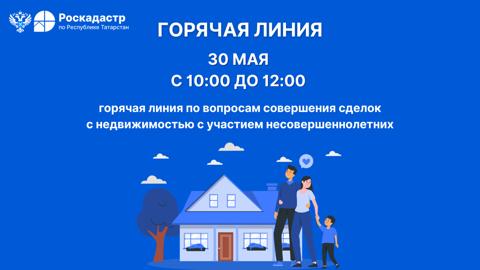 30 мая с 10 до 12 часов, в преддверии Международного Дня защиты детей, Росреестр совместно с Роскадастром по Республике Татарстан проведут горячую линию по вопросам совершения сделок в интересах несовершеннолетних.