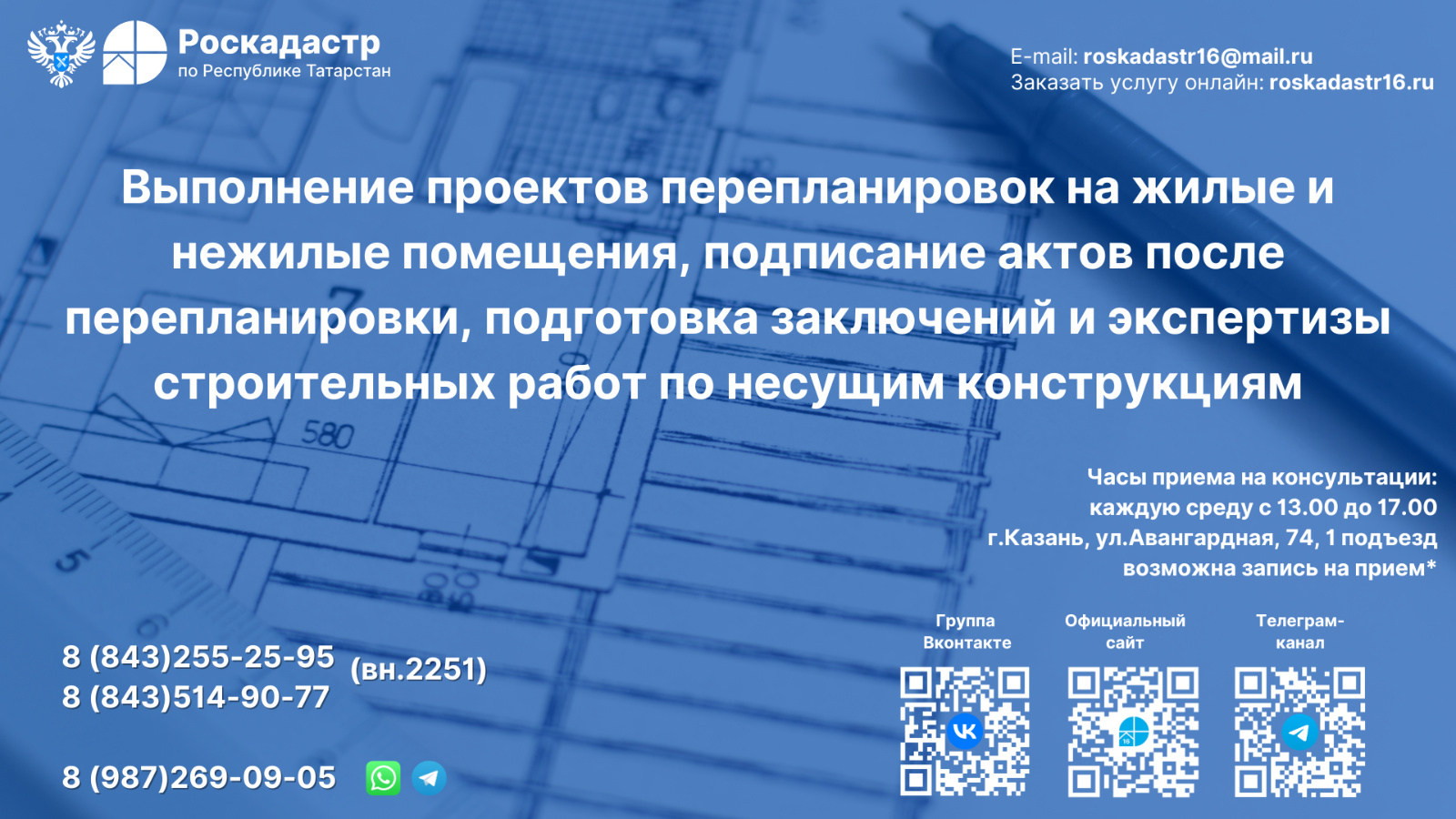 Филиал Роскадастра по Республике Татарстан оказывает широкий спектр услуг в сфере земли и недвижимости. Более подробно можете узнать на нашем сайте. (https://roskadastr16.ru/).