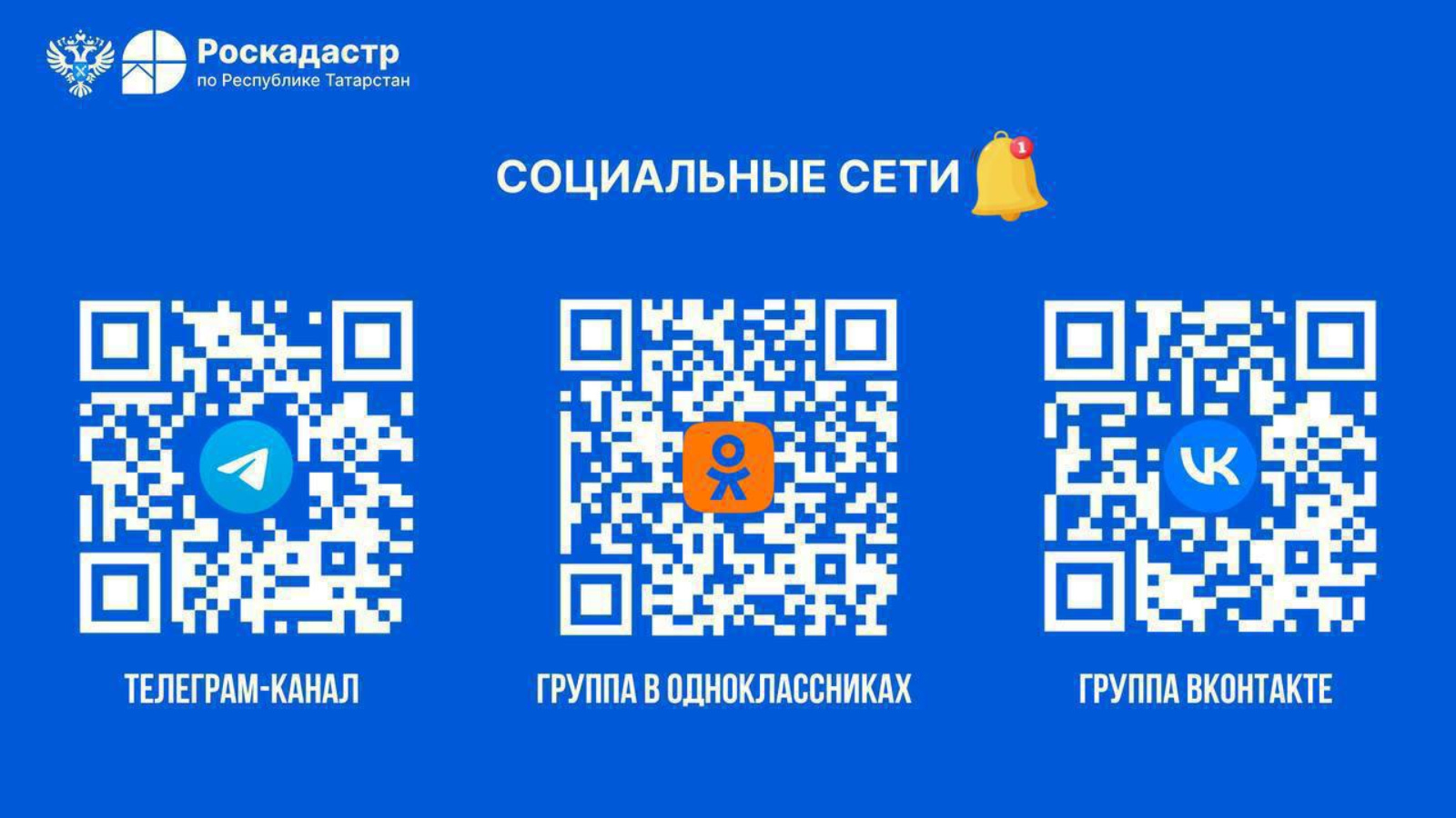 Приглашаем вас подписаться на официальные аккаунты Роcкадастра Татарстана в соц.сетях.