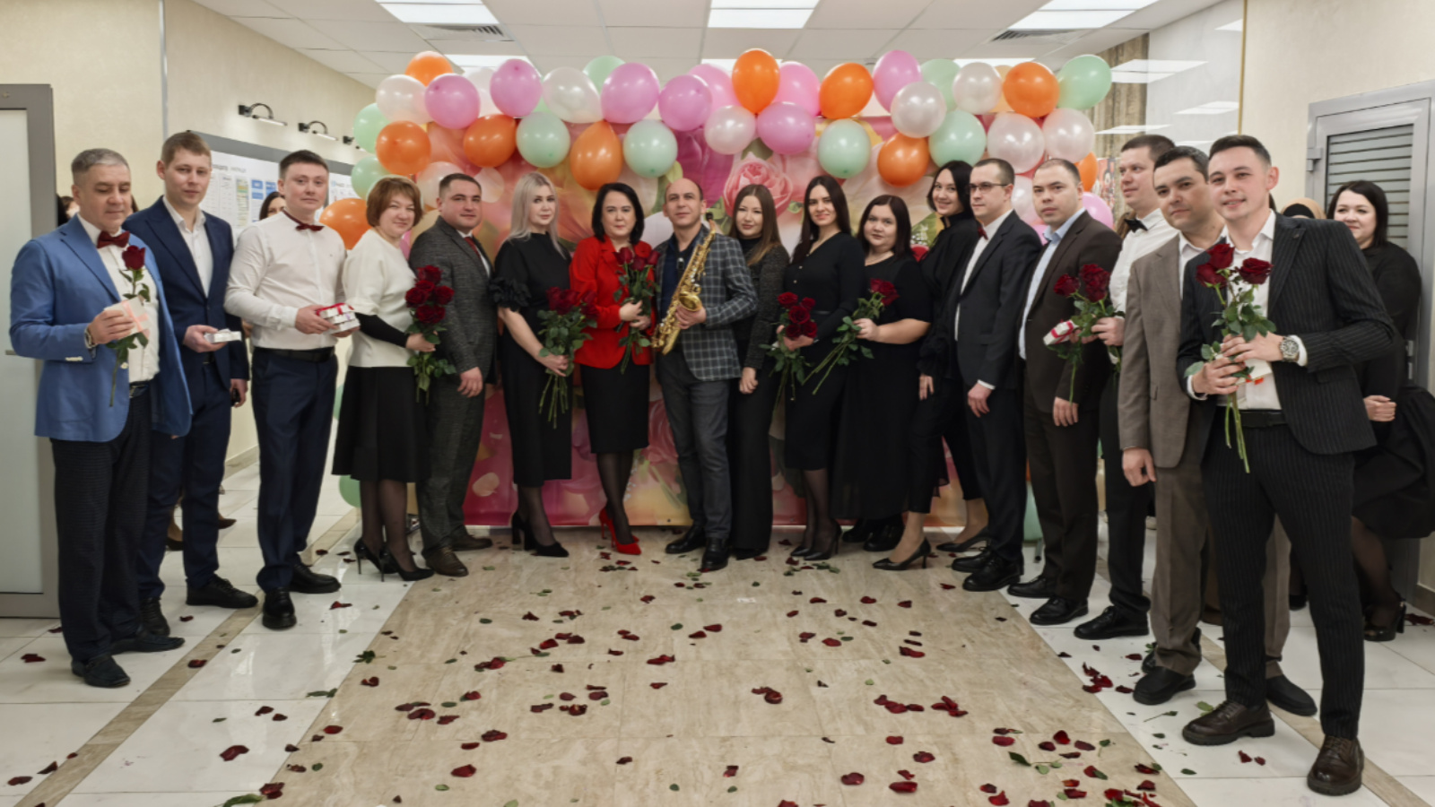 В канун самого весеннего праздника коллеги-мужчины с раннего утра под музыку встречали прекрасную половину коллектива.